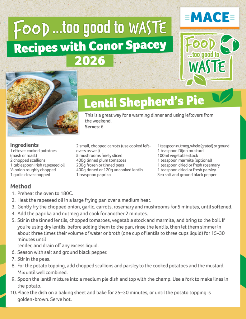 Did you know the average Irish household throws out about 150kg of food waste each year which can be the equivalent to €700?! To help tackle this, Food…too Good to Waste is our brand-new initiative in collaboration with STOPFoodWaste.ie which is a national campaign managed by the Environmental Protection Agency to help reduce household food waste across Ireland.